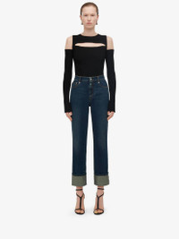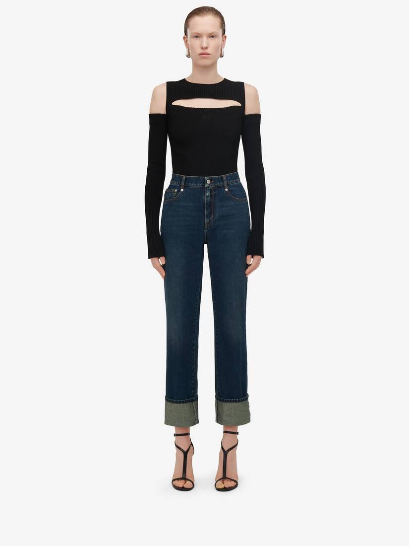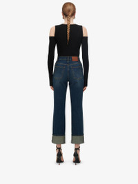 Indigo denim boyfriend jeans featuring a five-pocket design and turn-up detail. The jeans are finished with a button and zip front fastening. Product details - Belt loops - Button and zip fastening - Made with organic cotton yarn - Product code: 797823QMACS4297 - Made in Italy