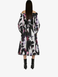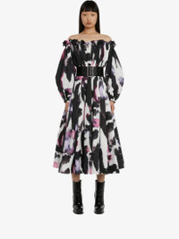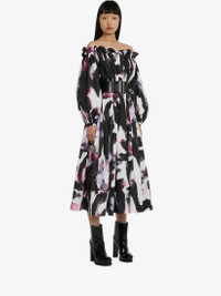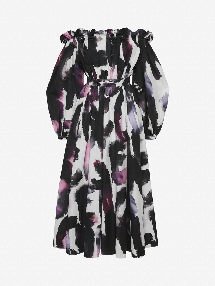 Women's Watercolour Graffiti Off-the-shoulder Midi Dress in White/multicolor