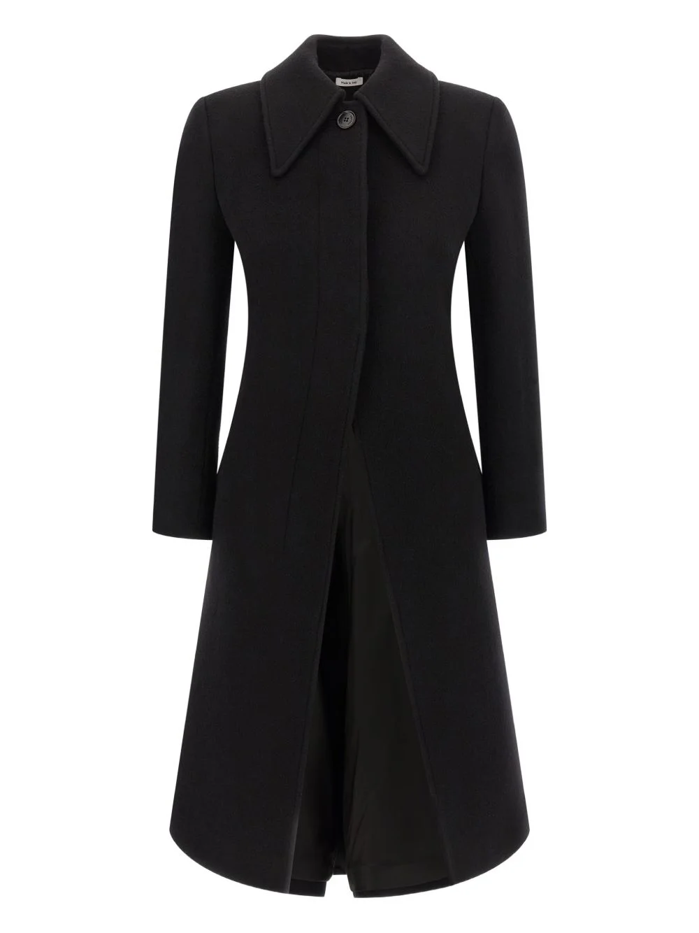 single-breasted coat Highlights - Black - Pointed collar - Front button closure Made in Italy Composition Cashmere 50%, Wool 50% Washing instructions Read Manufacturer Guidelines