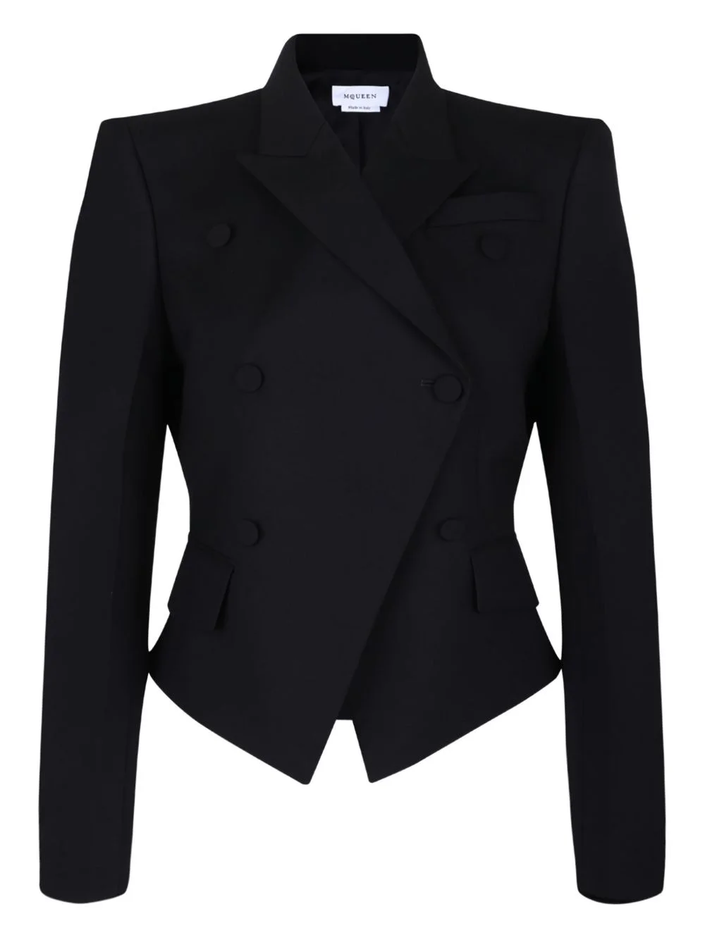 wool blazer Highlights - Black - Double-breasted button fastening - Chest welt pocket - Two side flap pockets - Long sleeves Made in Italy Composition Wool 100% Washing instructions Read Manufacturer Guidelines