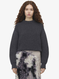 Crew neck jumper. Grey wool cashmere knit with dropped shoulders and cocoon sleeves. Finished with ribbed trim detail. Product details - Cocoon sleeves - Ribbed trims - Product code: 807668Q1BBI1015 - Made in Italy