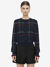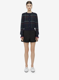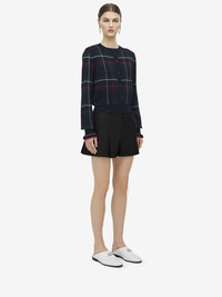 Crew neck jumper in green, blue and yellow wool tartan. Finished with an elasticated ruffle hem. Product details - Crew neck - Long sleeves - Product code: 839787Q1BEL3072 - Made in ITALY - Material: 100% Wool