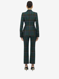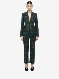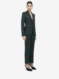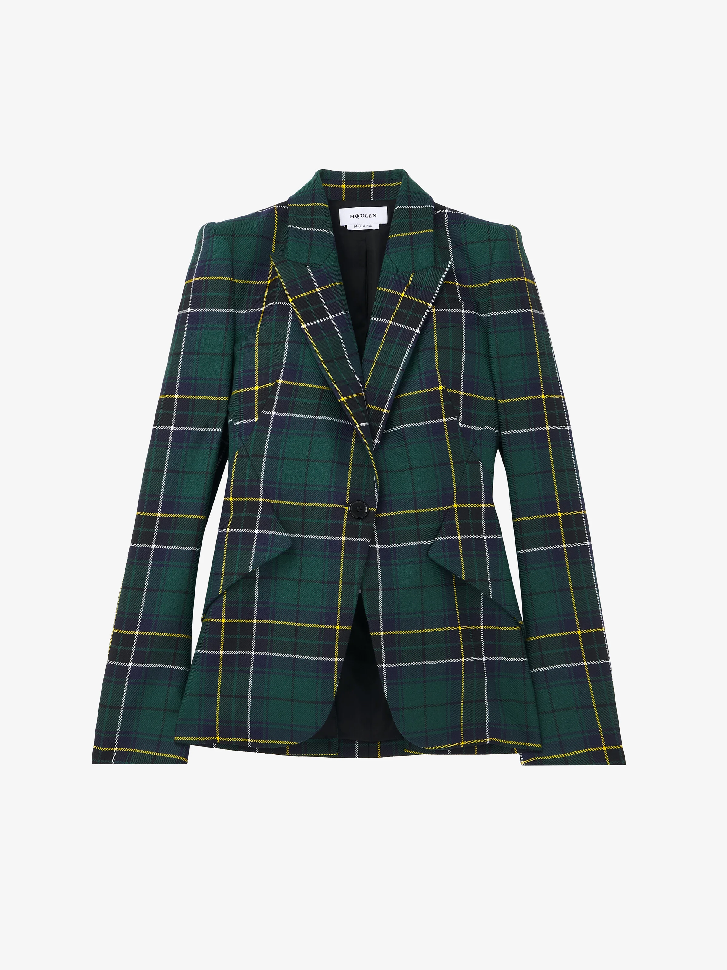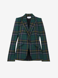 Peak shoulder single-breasted jacket in navy blue, green and yellow wool tartan. Peak lapels and side flap pockets. Finished with a single button fastening. Product details - Peak lapels - Side flap pockets - Single button fastening - Product code: 842110QJAFI4348 - Made in Italy - Material: 100% Wool