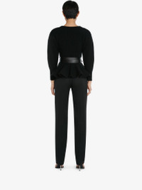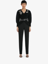 Black wool jumper featuring a V-neck, a ribbed-knit design and Tree Graffiti embroidery. Finished with kickback detailing. Material:100% Wool Product Code:710213Q1A3T1011