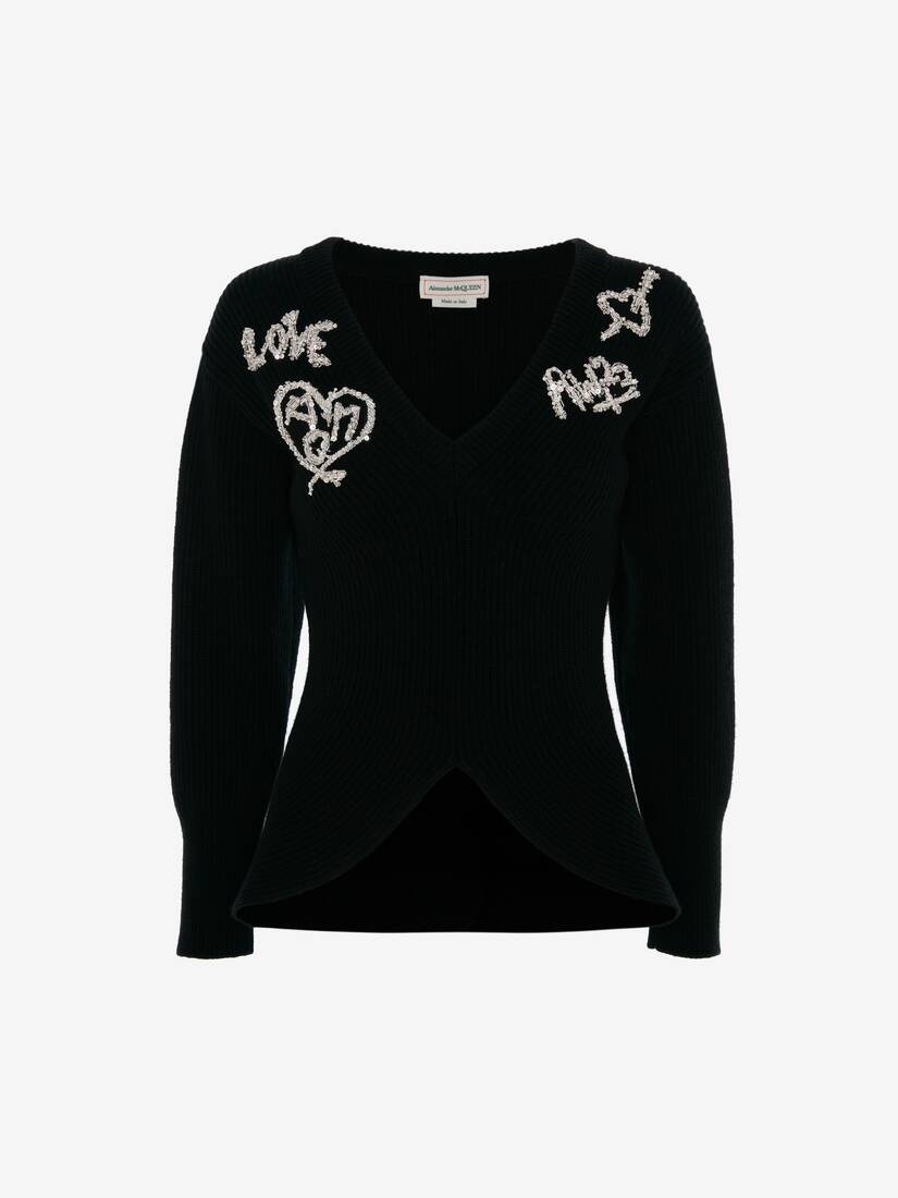 Wool Tree Graffiti Jumper in Black/crystal