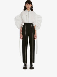 High waisted trousers in sartorial wool tailoring featuring silver-finished zips. Concealed zip fastening on centre front. Material:100% Wool Product Code:700110QJACX1000