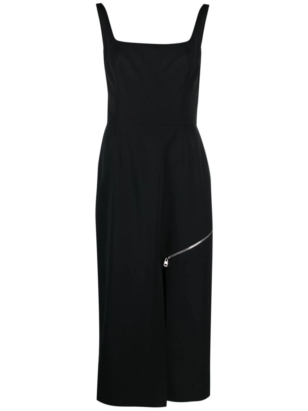 zip-embellished midi dress This midi dress speaks to Alexander McQueen’s punk-inspired aesthetic. It's crafted from soft wool and features a side slit embellished with a silver-tone zip. Highlights - Black - Wool - Decorative zip detailing - Square neck - Concealed rear zip fastening - Sleeveless - Side slit - Mid-length Made in Italy Composition Lining: Acetate 74%, Silk 26% Outer: Wool 100% SIZE & FIT Model measurements Height 5 ft 10 in(1.79 m) Bust/Chest 31.1 in(79 cm) Hips 35.03 in(89 cm) Waist 24.01 in(61 cm) FittingInformation Designed for a slim fit that sits just away from the body offering a close yet comfortable fit Made from a midweight non-stretch fabric This piece fits true to size – take your usual size Washing instructions Dry Clean Only