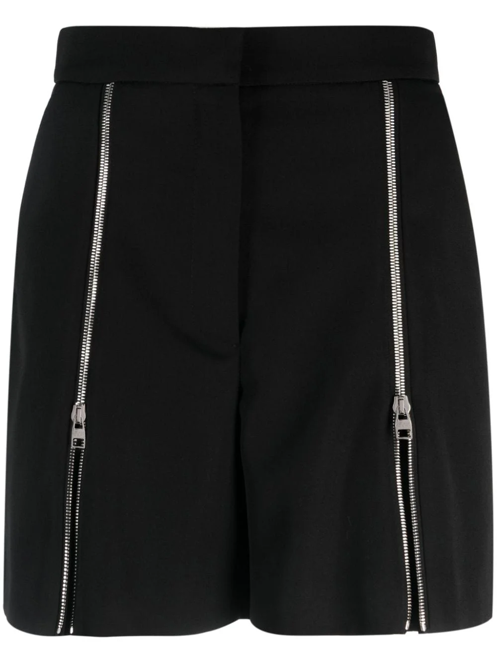 zip-embellished wool shorts These black twill Alexander McQueen shorts are a study in the dissection of tailoring. They’re detailed with zips through the front that can be unfastened to alter the silhouette. Highlights - Black - Wool - Twill weave - Zip details - High-waisted - Two side slit pockets - Rear jetted pocket Made in Italy Composition Outer: Wool 100% Lining: Cupro 100% SIZE & FIT Model measurements Height 5 ft 11 in(1.8 m) Bust/Chest 34.25 in(87 cm) Hips 35.82 in(91 cm) Waist 24.8 in(63 cm) Washing instructions Dry Clean Only