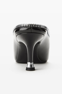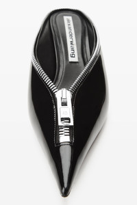 a closed toe mule that delivers a sleek profile, closed toe and 65MM heel with zip detailing for easy on and off. - Black - open-back mule construction - calf leather upper - nappa leather footbed for comfort - genuine cow leather outsole - Made in China - 30226M003001 composition Upper: 100%CALF LEATHER EMBELLISHMENT 100.0%: 50%GLASS/50%BRASS Lining: 100%Sheep Leather (Ovis Aries Aries) Outsole: 100%COW LEATHER