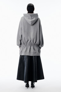 Dark heather grey mini hoodie dress in organic dry terry. Designed with a cinched drop waist and exaggerated flared hem for dramatic proportion play. - Dark Grey - Kangaroo pocket at front - Drawcord waistband - Pulls over - Side seam pockets - Body Composition: 100% Cotton - Made in Portugal - Model is 5'11" and Wears a Size S - 4CC1261176021 composition Body: 100%COTTON Rib Trim: 100%COTTON Lining: 100%COTTON