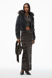 this bodycon grey maxi skirt spotlights a digital animal print in soft grey chenille. - pulls on - elastic waistband - body composition: 49% viscose/49% polyamide/2% elastane - trim: 50% viscose/49% polyamide/1% elastane - made in china - model is 5'10" and wears size s - 1kc4245045067 composition Body/Exterieur: 49%VISCOSE/49%POLYAMIDE/2%ELASTANE TRIM 1: 50%VISCOSE/49%POLYAMIDE/1%ELASTANE