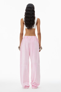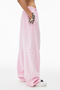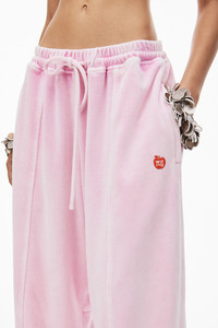 Washed candy pink pull on track pant in soft stretch velour with elasticated waistband and apple puff logo on left leg - loose and relaxed - full length - drawcord fastening - sits on high hip - unlined - body composition: 75% cotton/25% polyester - combination composition: 100% cotton - made in china - model is 5'9" and wears size s - 4CC12443550951B composition Body: 75%COTTON/25%POLYESTER Combo: 100%COTTON