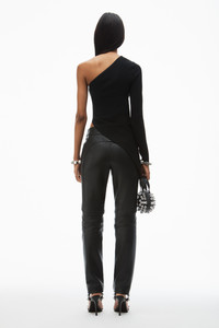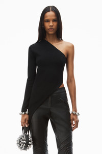 characterized by an asymmetric neckline and angled hem, this black long-sleeve top reflects this collection's sense of keen-edged femininity. it is cut in a bodycon fit, accentuated by a side slit. - asymmetric neckline - long sleeves - pulls over - body composition: 74% viscose/25% polyamide/1% elastane - model is 5’9.5 and wears a size s - made in china - 1kc4241037001 composition Body/Exterieur: 74%VISCOSE/25%POLYAMIDE/1%ELASTANE