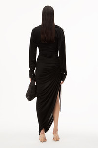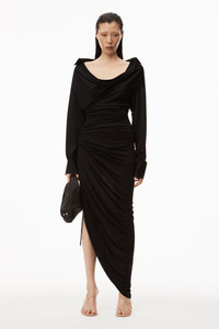 ASYMMETRICAL DRAPE DRESS IN SHEER JERSEY