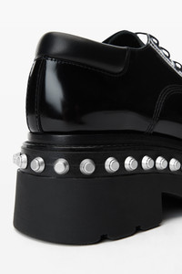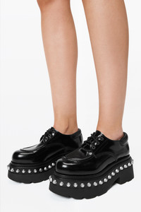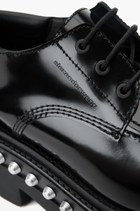 a trap-studded welt defines this black leather atlas derby. it features a chunky lug sole and lace-up closure. - round toe - lace closure - upper: calf leather - lining: calf leather - outsole: rubber - made in spain - 30424f032001 composition UPPER: 100%CALF LEATHER LINING: 100%CALF LEATHER OUTSOLE: 100%RUBBER