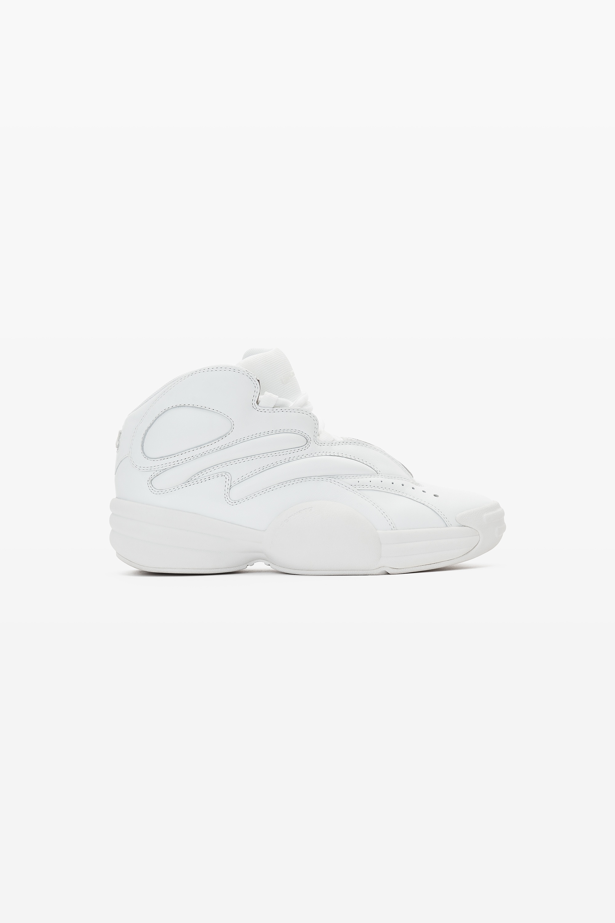 monochromatic lace-up basketball sneaker in white leather with padded pods and lightweight, sculpted rubber outsole - heel height: 55 mm - platform height: 35 mm - signature comfort footbed - semi-shine finish - upper: 100% cow leather - lining: 100% polyester - outsole: 100% rubber - made in indonesia - 30323N056100