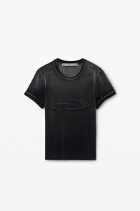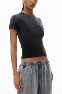 An embossed dome logo at the chest offsets this velour baby tee in washed nickel, which is finished with a fade wash for an ombre effect. An embossed dome logo at the chest offsets this velour baby tee in washed nickel, which is finished with a fade wash for an ombre effect. - crewneck - short sleeves - body-hugging fit - body composition: 80% cotton/19% polyester/1% elastane - model is 5'9" and wears a size s - made in portugal - 4CC1251563024B composition Body/Exterieur: 80%COTTON/19%POLYESTER/1%ELASTANE