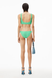 bikini bottom with cheeky high cut in mint julep allover logo textured jacquard swim jersey - bodycon fit - fully lined - composition: 95% polyamide / 5% elastane - lining: 89% polyester / 11% elastane - made in hong kong - model is 5'10" and wears a size s - 4CC2238040347