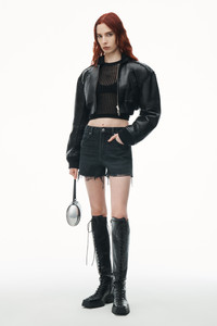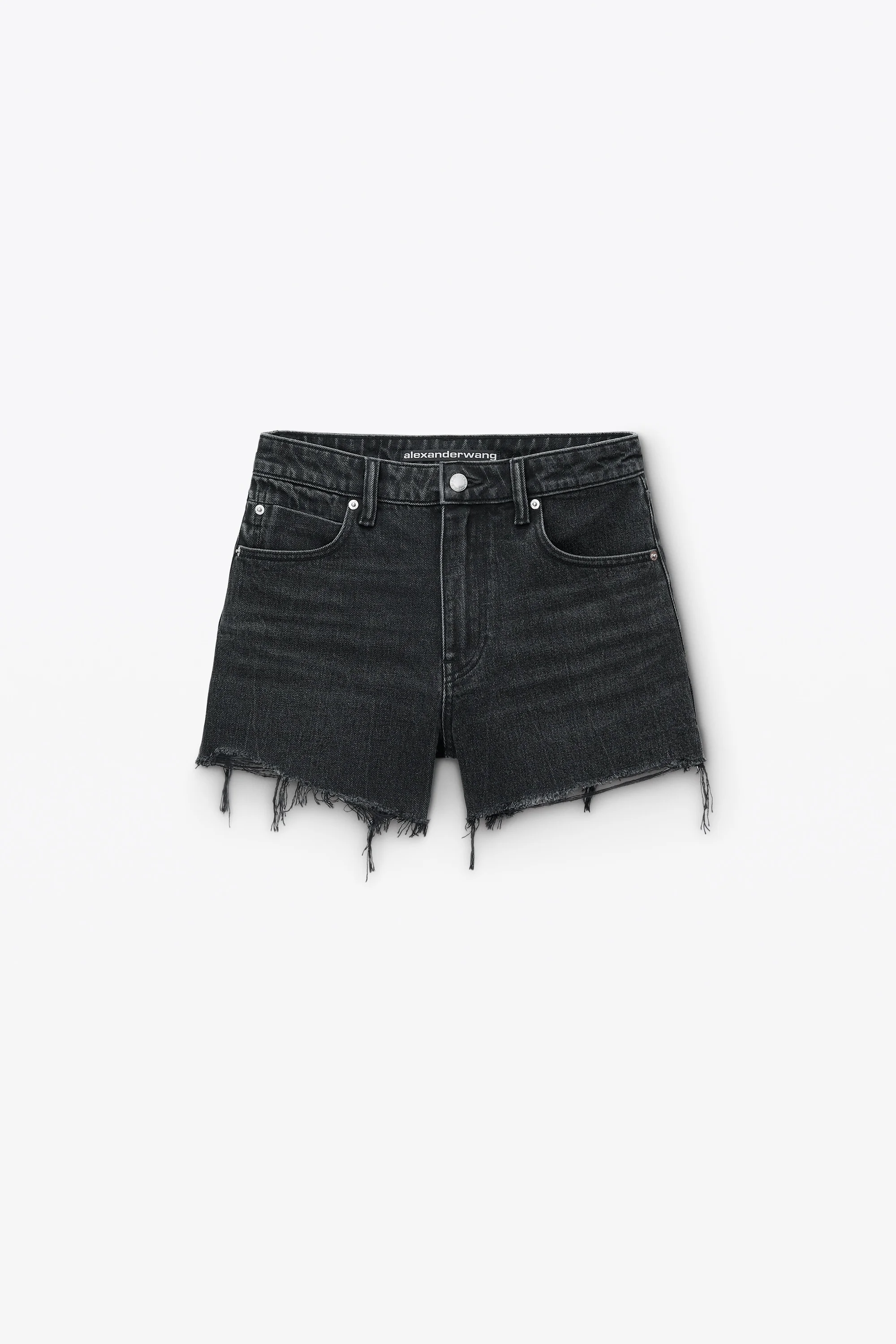 Cut to a high-rise, this light indigo denim cut-off bite short spotlights an unevenly hand-frayed hem for a natural, worn-in look. The signature 3D embossed logo at the back pockets amplifies this 5-pocket style in a grey aged wash. - zip fly, button closure - five-pocket style - composition: 100% cotton - made in china - form-fitting - model is 5’11 and wears a size 26 - 4DC2244301031 composition Body/Exterieur: 100%COTTON