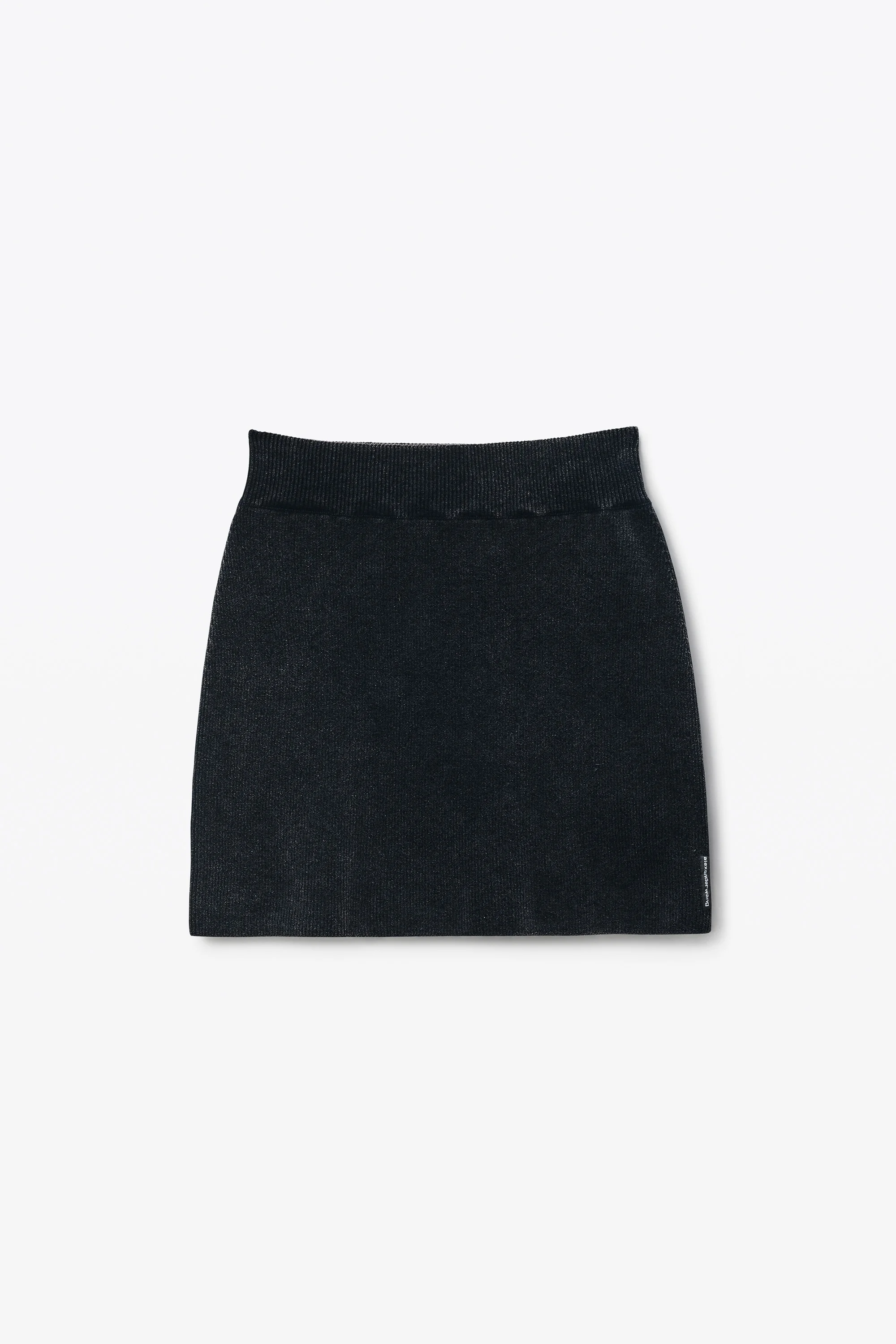 This knit miniskirt features a cotton-blend chenille with sweater-rib trim in a grey acid wash, creating heightened tonal contrast within the black colorway. Crafted from breathable, midweight yarn, it’s a versatile transseasonal piece. - elastic waistband - pull-on style - hits at thigh - body composition: 88% cotton/10% polyamide/2% elastane - made in china - model is 5'11" and wears a size s - 1KC3255067011 composition Body: 88%COTTON/10%POLYAMIDE/2%ELASTANE Trim: 89%COTTON/10%POLYAMIDE/1%ELASTANE Trim 2: 72%COTTON/26%POLYAMIDE/2%ELASTANE