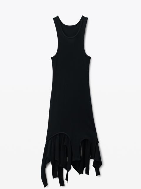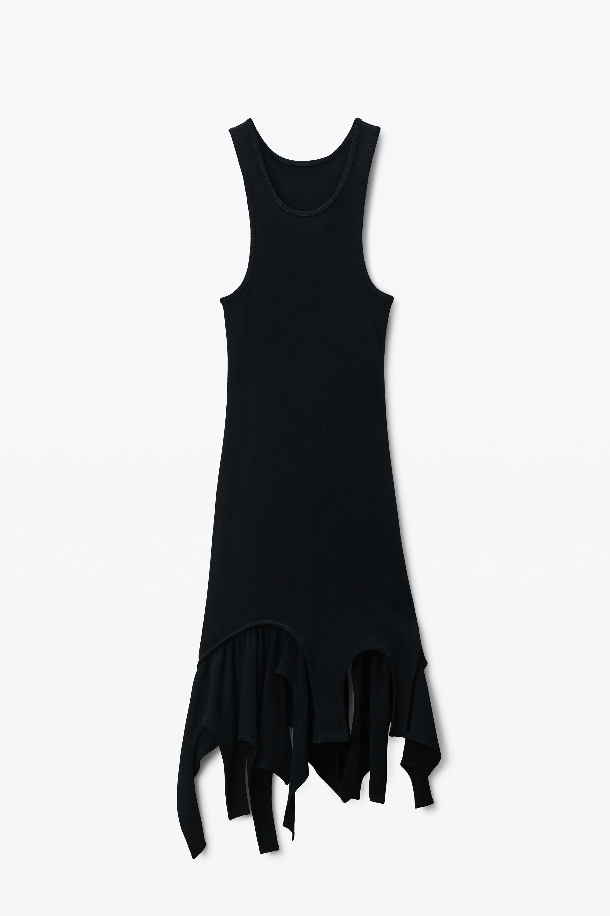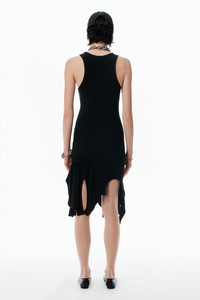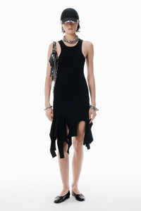 Asymmetrical godets and a handkerchief hem accentuate the deconstructed look of this black drop-waist mini tank dress. - racerback - sleeveless - pull-on style - body composition: 100% cotton - made in china - model is 5'11" and wears a size s - 1CC3256844001 composition Body: 100%COTTON