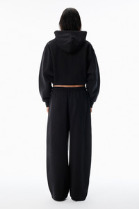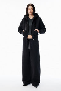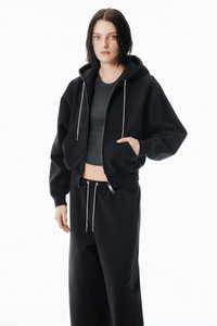 Zip-up hoodie in black organic dry terry with a crystal-embellished non-adjustable drawcord at the hood. Cropped at the high hip and finished with a kangaroo pocket and woven label detail. - Hood with crystal hotfix drawcord - long sleeves, ribbed cuffs - front-zip closure - relaxed fit, hits at hip - kangaroo pocket at waist - ribbed cuffs and hem - body composition: 100% cotton - made in Portugal - model is 5'11" and wears a size s - 4CC1252112001 composition Body: 100%COTTON Rib: 100%COTTON
