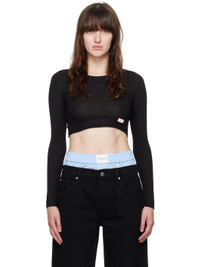 Semi-sheer cotton ribbed jersey T-shirt. · Rib knit crewneck · Logo patch at cropped hem Part of the Bodywear collection. Supplier color: Black