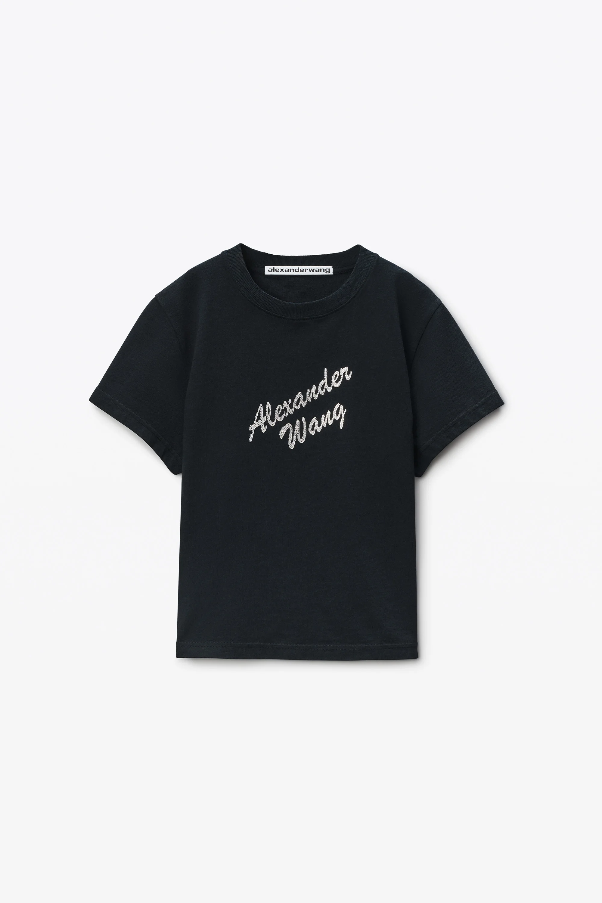 With a shrunken fit, this black cotton tee features a crystal hotfix logo at the chest. - crewneck - short sleeves - body composition: 100% cotton - made in Portugal - model is 5'11" and wears a size s - 1CC3251134001 composition Body: 100%COTTON