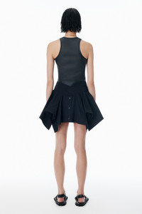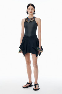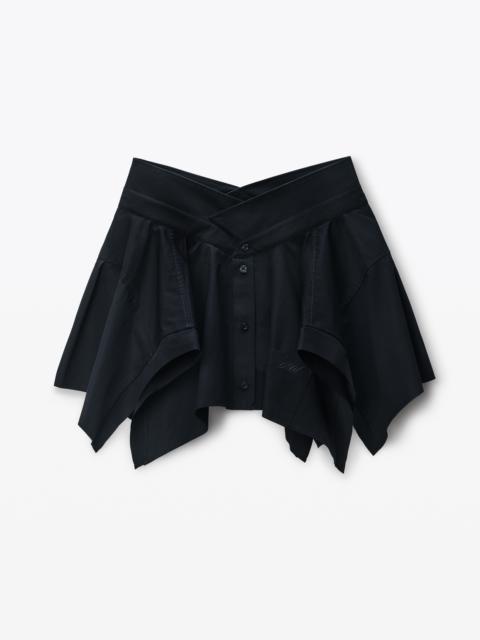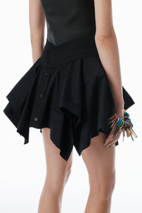 Crafted from two shirts, this black organic cotton high-low skirt features a waistband made from turned-up collars, logo-embroidered shirt pockets, and a raw-edged hem. - elastic waistband - body composition: 100% cotton - made in china - model is 5’11" and wears a size 4 - 4WC3255329001 composition Body: 100%COTTON