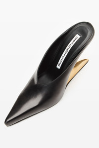 this pointy toe leather mule sits on a sculpted wedge heel with a gold-tone finish. the sharp silhouette blends elevation and edge with an architectural design. - pointy toe - upper: cow leather - lining: sheep leather - outsole: cow leather - made in Italy - heel height: 105mm/4in - 30425M001001 composition Upper: 100%COW LEATHER Lining: 100%Sheep Leather (Ovis Aries Aries) Outsole: 100%COW LEATHER