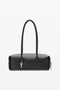 Crafted of black small grain leather, this medium shoulder bag takes inspiration from the iconic Ricco bag. A slim rectangle shape features lightweight metal studs at exterior bottom of bag. - shoulder straps - single main compartment, back wall zip pocket - body composition: cow leather - lining: 100%polyester - adjustable strap - magnetic closure - dimensions: 33x10x11cm / 13x3.9x4.3in - strap drop: 27cm / 10.6in - 100% leather - made in Vietnam - 20425K14L001 composition Body: 100%COW LEATHER Lining: 100%POLYESTER