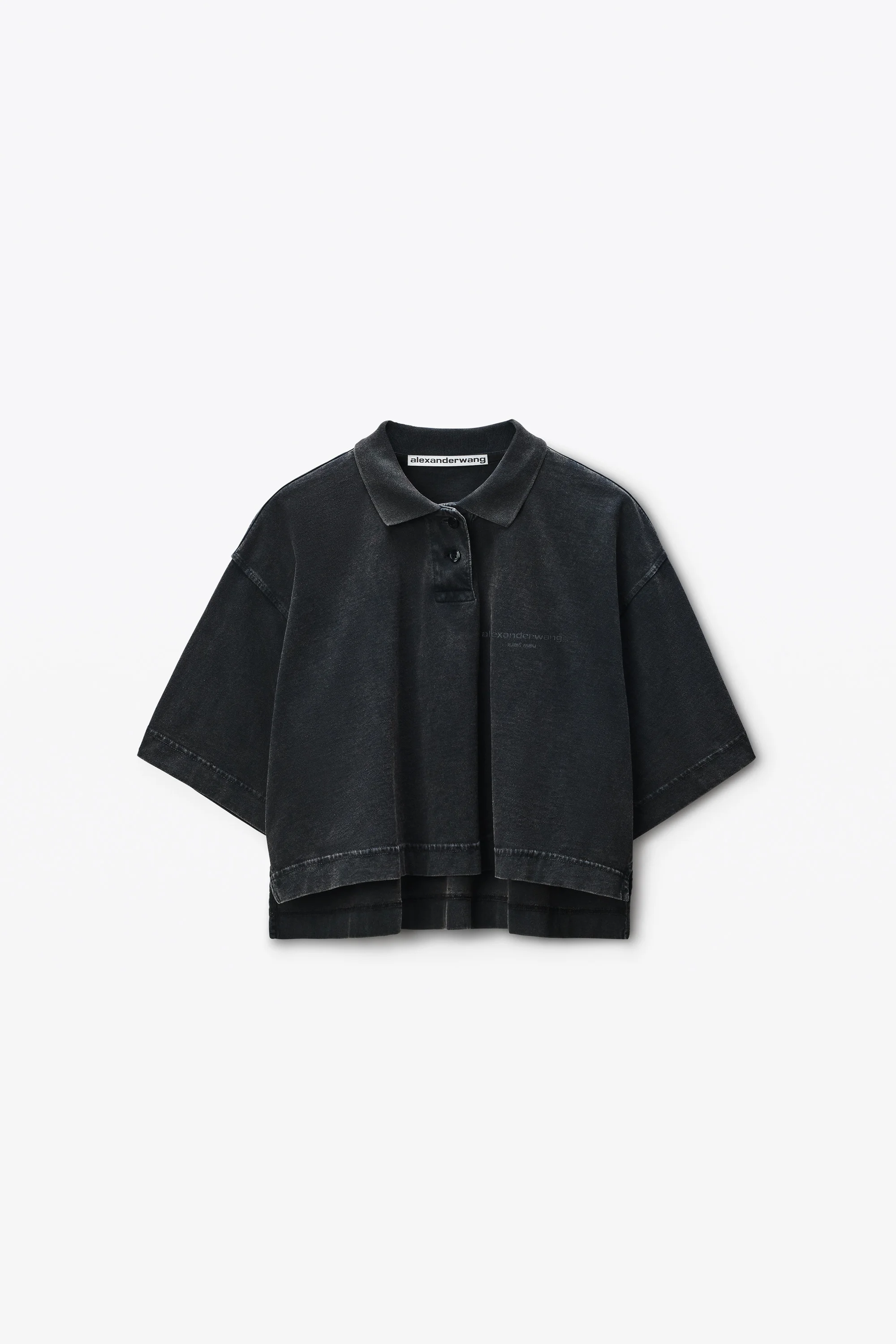 Accented by a side slit, this black cotton cropped polo tee is finished with logo embroidery at the left chest. - polo collar - button placket - short sleeves - hits at waist - body composition: 100% cotton - made in Portugal - model is 5'11" and wears a size s - 1CC3251056001 composition Body: 100%COTTON