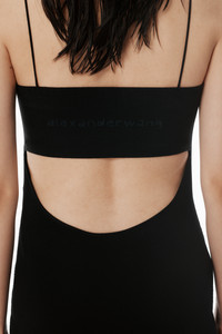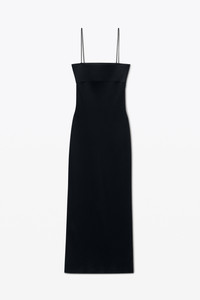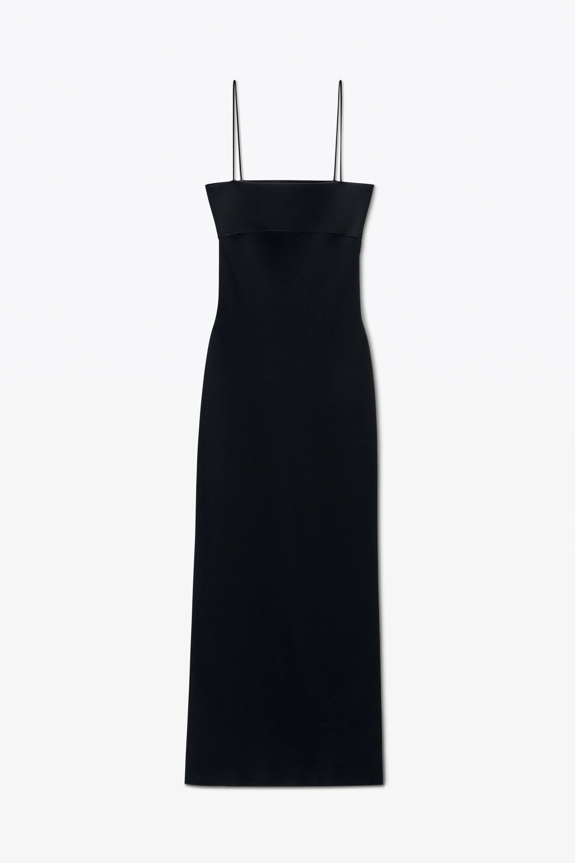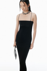 This black slip dress features a logo jacquard band across the chest and is crafted from a fine-gauge knit for a slinky feel and elevated look. The spaghetti straps and hem finish further enhance the dress's delicate aesthetic. - spaghetti straps - pull-on style - body composition: 79% viscose/15% polyamide/6% silk - made in china - model is 5'11" and wears a size s - 1KC3256002001 composition Body: 79%VISCOSE/15%POLYAMIDE/6%SILK Trim: 62%VISCOSE/31%POLYAMIDE/5%SILK/2%ELASTANE