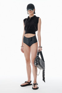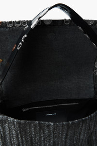this black medium ricco flap bag features bubble-crane cotton canvas with an airbrushed print that mimics the appearance of vintage leather. eclectic hardware, a detachable sculpted nail chain, and branded adornments define the style. - magnetic flap - detachable strap - main compartment, twill lining - body composition: 100% cotton - lining: 100% cotton - trim: cow leather - trim 2: aluminum/alloy - made in vietnam - 20325K12T135 composition Body: 100%COTTON Trim: 100%COW LEATHER Trim 2: 98%ALUMINUM/2%ALLOY Lining: 100%COTTON