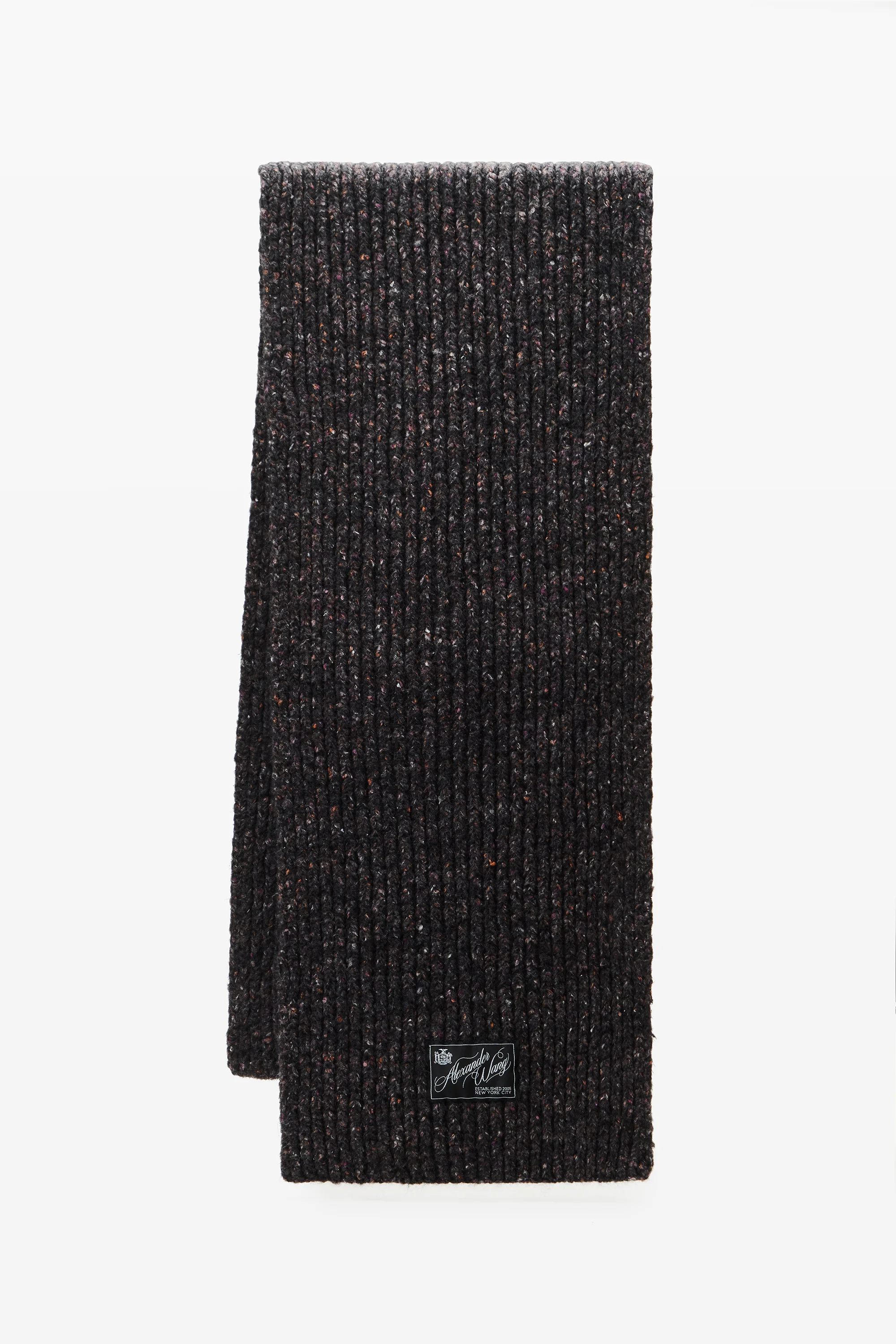 Ribbed knit scarf in black multi mouline yarn, finished with a branded tailoring label appliqued at the hem. - body composition: 38%wool/21%cotton/18%polyamide/12%mohair/9%polyester/2%viscose - made in Vietnam - 1KC4259034004 composition Body: 21%COTTON/18%POLYAMIDE/9%POLYESTER/2%VISCOSE/12%MOHAIR/38%WOOL (OVIS ARIES ARIES) Rib: 20%COTTON/18%POLYAMIDE/9%POLYESTER/2%VISCOSE/11%MOHAIR/40%WOOL (OVIS ARIES ARIES)