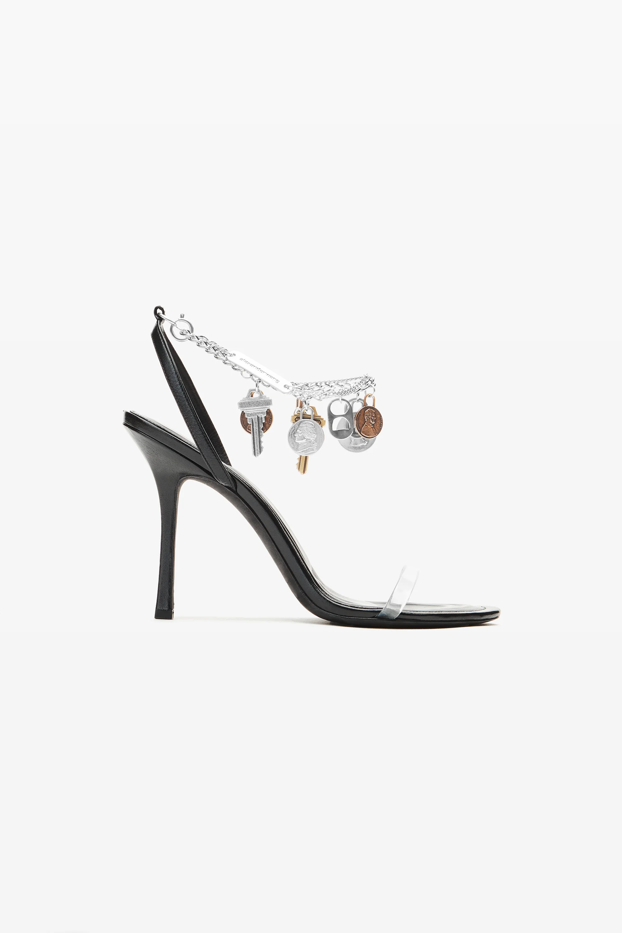 105mm leather slingback sandal featuring a logo nameplate chain ankle strap and translucent strap detail. finished with a smooth leather footbed and cow leather outsole. - open toe - upper: sheep leather/tpu - lining: sheep leather - outsole: cow leather - heel height: 105mm /4in - made in China - 30425S012001 composition Upper: 50%Sheep Leather (Ovis Aries Aries)/50%THERMOPLASTIC POLYURETHANE Lining: 100%Sheep Leather (Ovis Aries Aries) Outsole: 100%COW LEATHER