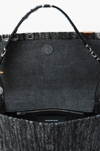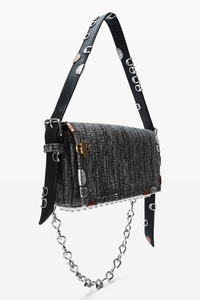 this slim ricco flap bag features bubble-grain cotton canvas with a graffiti-style marker print. eclectic hardware, a detachable sculpted nail chain, and branded adornments define the style. - shoulder strap - magnetic flap - detachable strap - main compartment, twill lining - body composition: 100% cotton - lining: 100% cotton - trim: cow leather - trim 2: aluminum/alloy - dimensions: 26.5 x 14 x 6.5 cm / 10.4 x 5.5 x 2.6 in - strap drop: 16 cm / 6.3 in - shoulder strap length: 93 cm / 36.6 in - made in vietnam - 20325K13T135 composition Body: 100%COTTON Trim: 100%COW LEATHER Trim 2: 98%ALUMINUM/2%ALLOY Lining: 100%COTTON