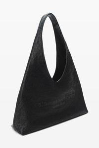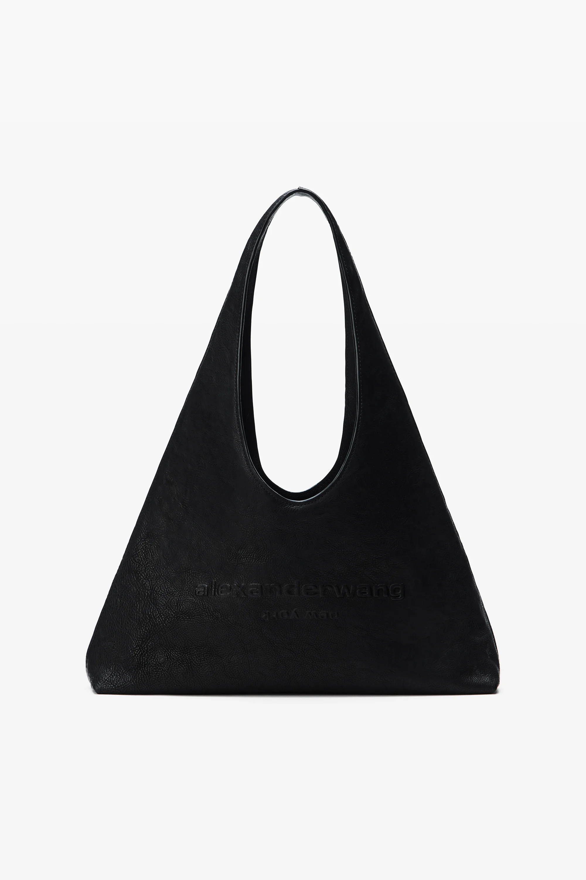 crafted from crinkle-effect calfskin, this large hobo bag fastens with a D-ring closure and features a raised logo across the front. - shoulder straps - main compartment, back wall patch pocket - canvas lining - body composition: calfskin - lining: 100% cotton - dimensions: 31 x 16.5 x 9 cm / 12.2 x 6.5 x 3.5 in - expandable: 40 cm / 15.7 in - strap drop: 27cm / 10.6 in - made in vietnam - composition Body: 100%CALFSKIN Lining: 100%COTTON