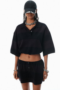 An adjustable drawcord at the hem enhances this heavy cotton pique polo, featuring overdyed black stripes and finished with logo embroidery at the chest. - oversized sleeves - button placket - body composition: 98% cotton/2% elastane - made in portugal - model is 5'11" and wears a size s - 4CC3251030963B composition Body: 98%COTTON/2%ELASTANE
