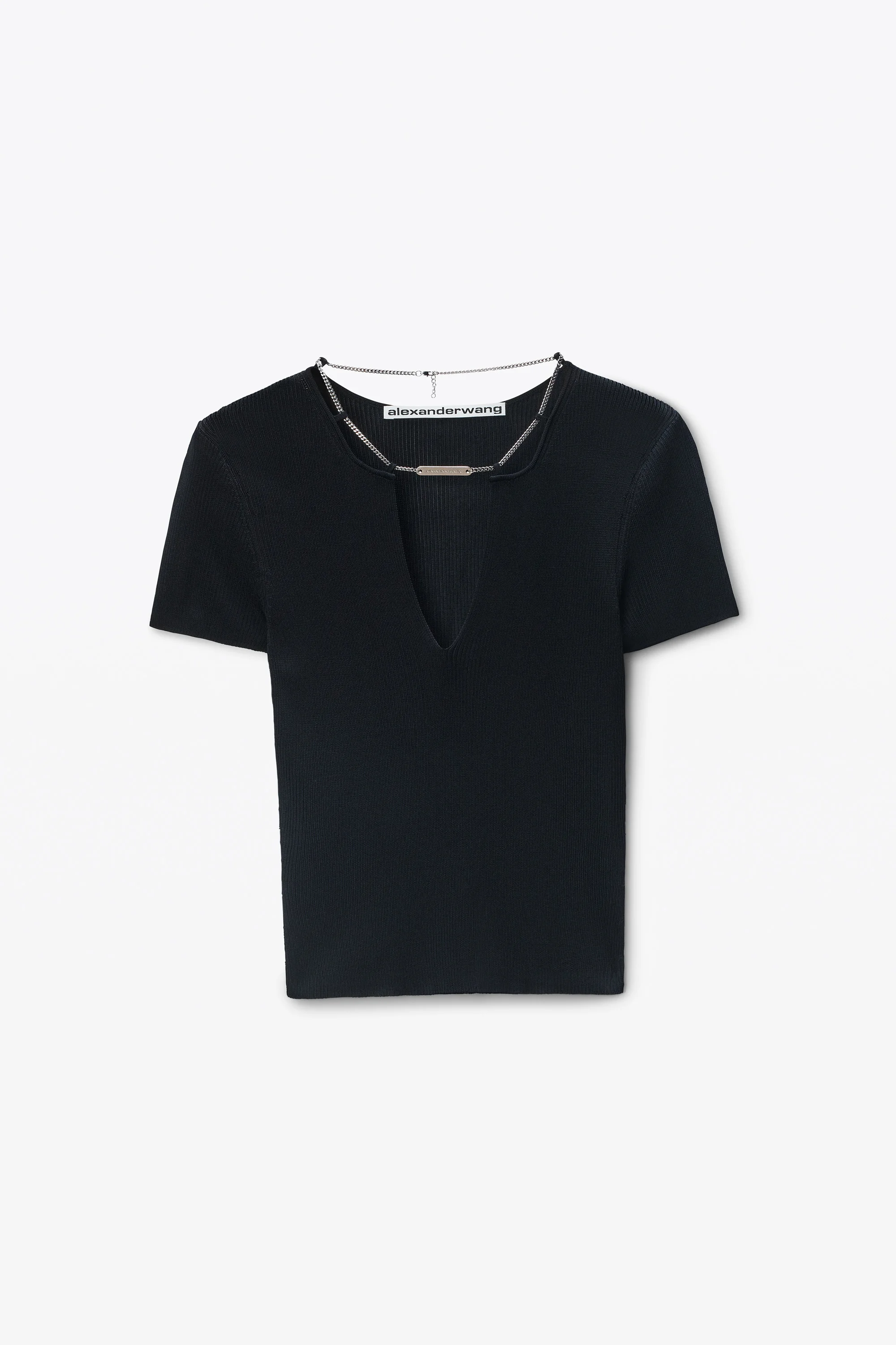 A detachable logo nameplate at the neck defines this black split-neck pullover, crafted in a ribbed knit construction. - split neck - long sleeves - body composition: 100% viscose - made in vietnam - model is 5'10" and wears a size s - 1KC3251062001 composition Body: 100%VISCOSE