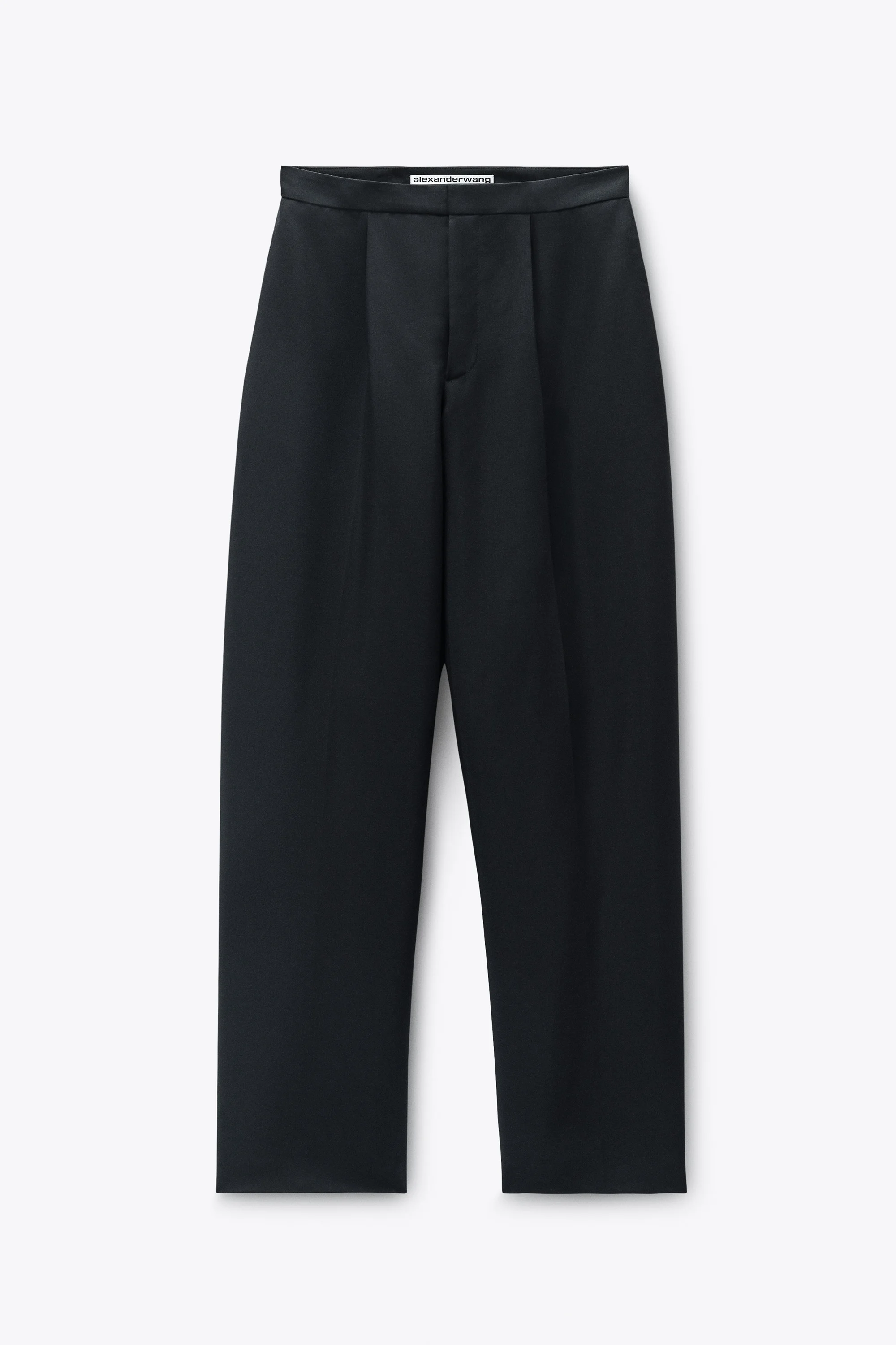 Tailored mid-rise pant in black wool mohair suiting with a classic fly front and inseam pockets. Designed to stack at the floor for an oversized feel, it features articulated back knee seams, welt pockets with a button closure, and a branded tailoring label. - front fly closure - side seam and back welt pockets - partial lining - body composition: 77% wool / 23% mohair - lining: 100% viscose - made in China - model is 5'11" and wears a size 4 - 1WC4254925001 composition Body: 77%WOOL (OVIS ARIES ARIES)/23%MOHAIR Lining: 100%VISCOSE