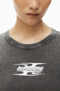 a blade logo-embossed motif at the center characterizes this oversized tee in a faded grey wash. - crewneck - short sleeves - body composition: 100% cotton - trim: 100% cotton - made in portugal - model is 5’10" and wears a size s - 4cc4241515208a composition Body/Exterieur: 100%COTTON RIB TRIM: 100%COTTON