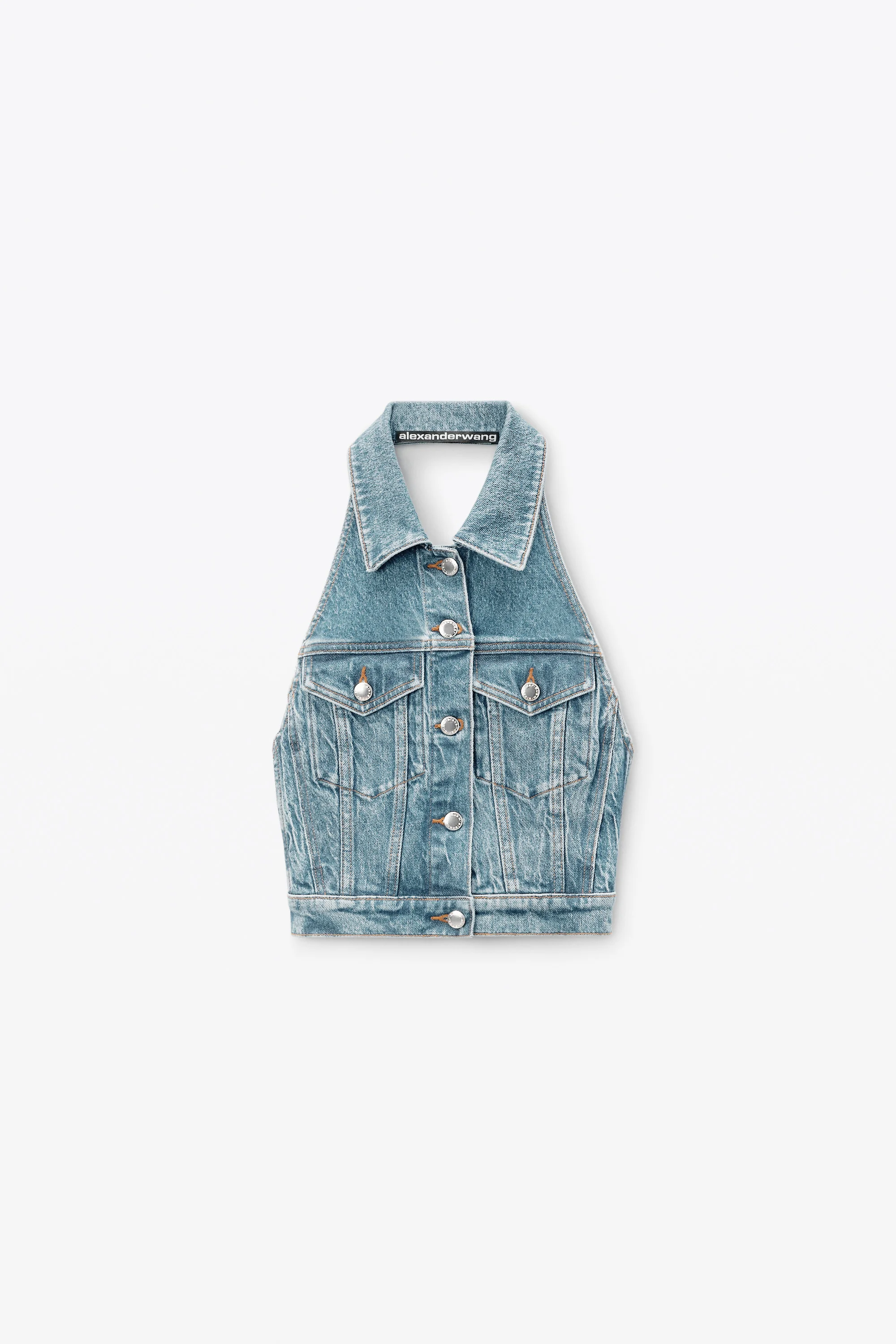 This cotton-stretch denim top features a vintage bleach blue wash and trucker-style details. - racerback tank - body composition: 52% cotton/47% lyocell/1% elastane - made in china - model is 5'11" and wears a size s - 4DC3251877470C composition Body: 52%COTTON/47%LYOCELL/1%ELASTANE