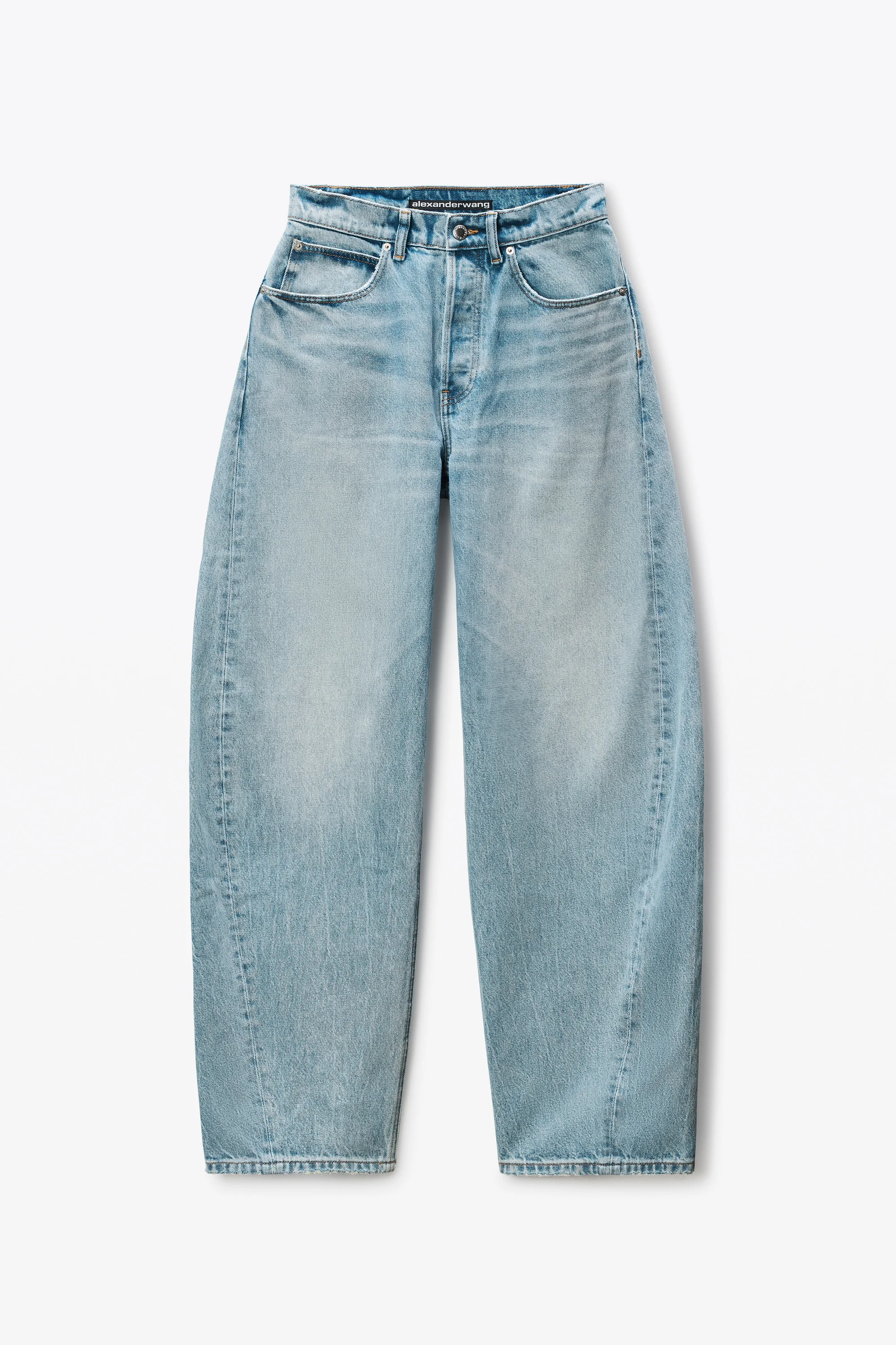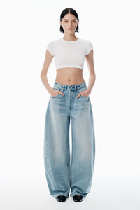 These vintage blue mid-rise jeans feature an exaggerated oversized fit with twisted side-seam details, enhancing the balloon leg. - five-pocket style - zip fly - 100% cotton - model is 5'10 and wears a size 27 - made in china - 4DC3254819470C composition Body: 100%COTTON