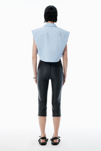This cropped sleeveless cotton button-up in blue features a detachable nameplate necklace, and is fastened with a button closure. - point collar - sleeveless - button placket - body composition: 100% cotton - made in china - model is 5'11" and wears a size s - 1WC3251132459B composition Body: 100%COTTON
