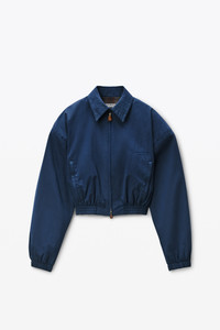 Detailed with a raw-edged finish and topstitching, this blue Harrington jacket is cut with rounded sleeves, equipped with welt-zip pockets, and features a two-way zip fastening. Lined in an overdyed plaid, the garment wash gives it a vintage-effect look, while logo embroidery at the chest completes the piece. - tab collar - zip-welt pockets - two-way zip closure - body composition: 74% cotton/26% polyamide - lining: 100% cotton - made in china - model is 5'11" and wears a size s - 1WC3252654402A composition Body: 74%COTTON/26%POLYAMIDE Lining: 100%COTTON