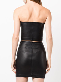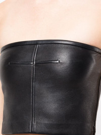 leather bodycon tube top black lambskin bodycon design strapless straight hem cropped Imported Composition Body: Lambskin 100% SIZE & FIT Model measurements Height 5 ft 10 in(1.79 m) Bust/Chest 29.92 in(76 cm) Hips 34.25 in(87 cm) Waist 24.01 in(61 cm) FittingInformation This piece fits true to size. We recommend you get your regular size Cut for a close fit Made from supple hide