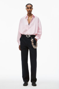 Light pink button-up oversized boyfriend shirt in compact cotton with apple logo patch - loose and relaxed fit - hits at high thigh - unlined - composition: 100% cotton - made in china - model is 5'11" and wears size s - 4WC1241449680 composition Body: 100%COTTON