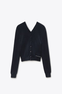 Fitted long sleeve cardigan crafted in extra-soft wool with a continuous placket and classic rib trim. Detailed with faux horn buttons and a tonal logo patch on the wearer’s left rib, this style offers a multitude of styling options. - Black - High neck - Body composition: 89% Wool/ 9% Polyamide/2% Elastane - Trim: 89% Wool/10% Polyamide/1% Elastane - Made in China - Model is 5'11" and Wears a Size S - Made in China - 4KC1263050001 composition Body: 89%WOOL (OVIS ARIES ARIES)/9%POLYAMIDE/2%ELASTANE Trim: 89%WOOL (OVIS ARIES ARIES)/10%POLYAMIDE/1%ELASTANE