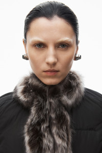 shearling trim defines this black cardigan puffer fastened by a snap closure and finished with an embroidered logo at the chest. - v-neckline - puffed sleeves/li> - snap closure - body composition: 100% nylon - lining: 100% polyamide - trim: lamb shearling - made in china - model is 5'10" and wears size s - 1wc4242573001 composition Body/Exterieur: 100%NYLON LINING: 100%POLYAMIDE Filling: 90%DOWN/10%FEATHER TRIM 1: 100%LAMB SHEARLING ( OVIS ARIES ARIES)